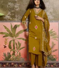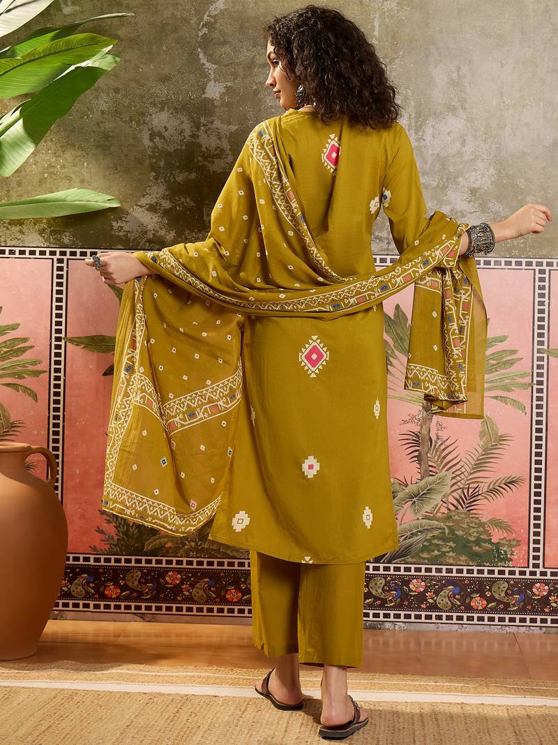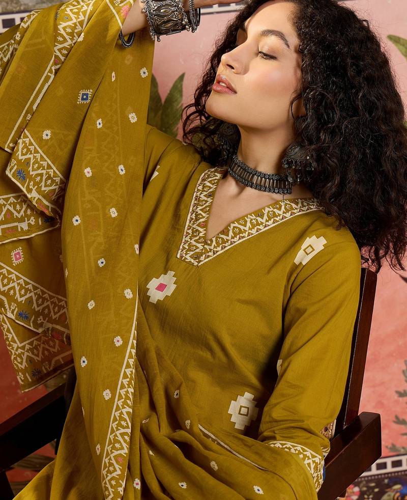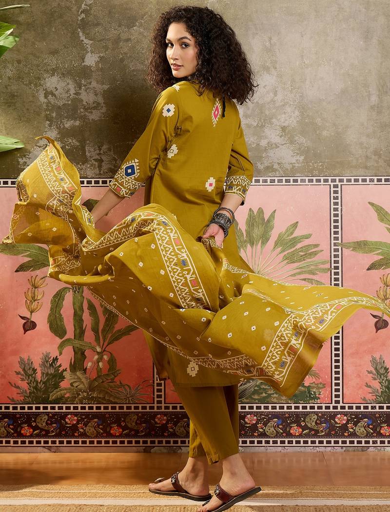 Mustard printed kurta with trousers & dupatta set