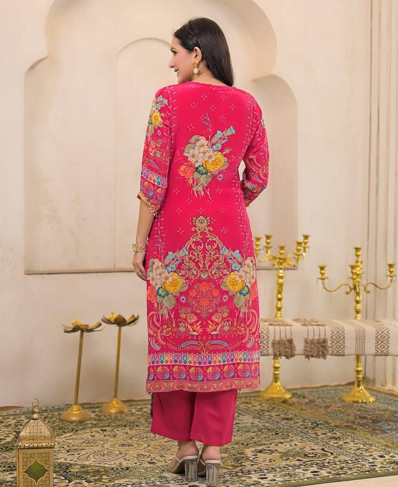 | Product Name | Pink Floral Printed Kurta With Trousers & Dupatta Set | |