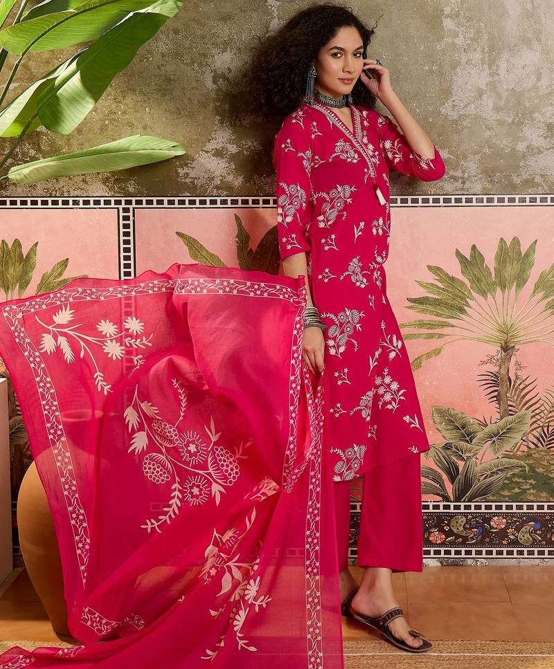 | Product Name | Pink Printed Kurta With Trousers & Dupatta Set | |