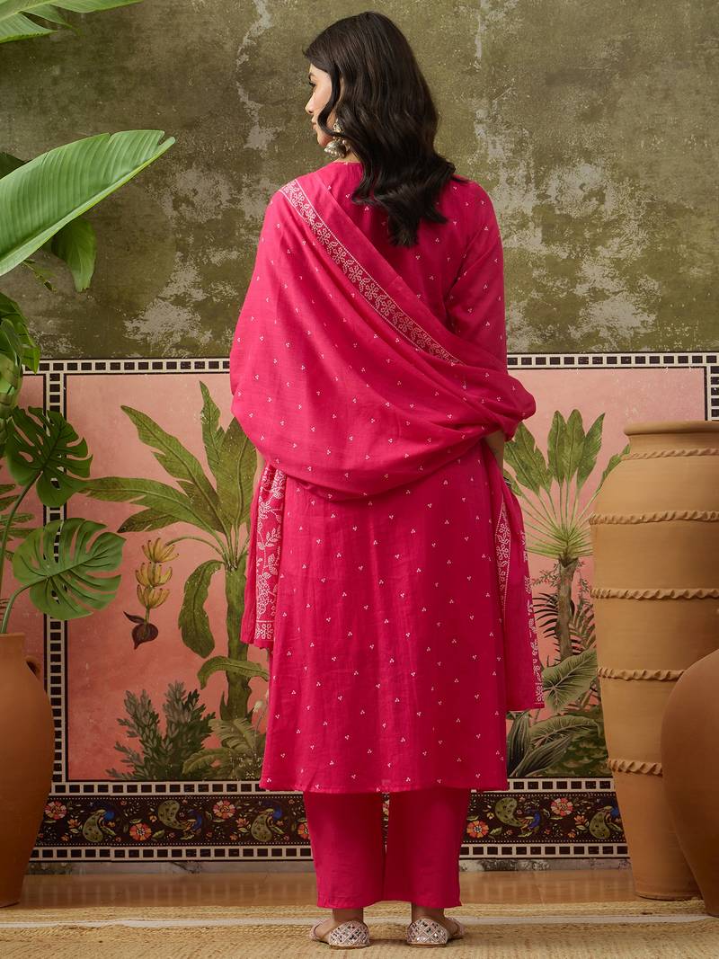Pink printed kurta with trousers & dupatta set