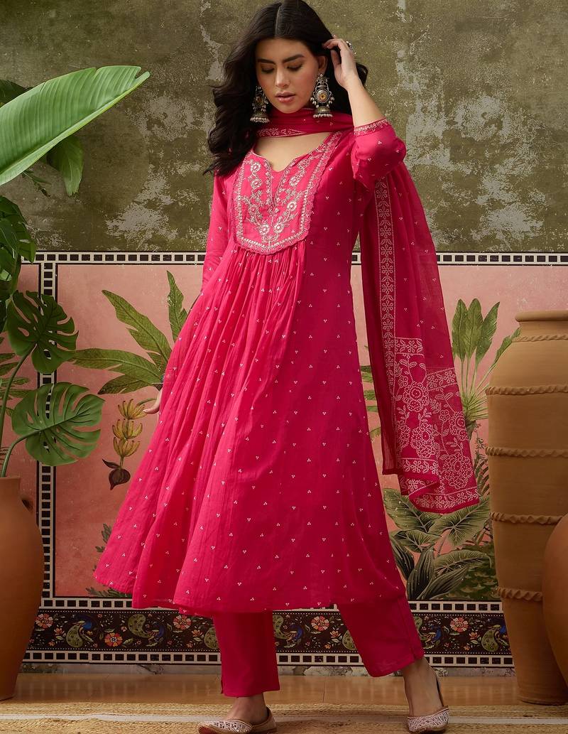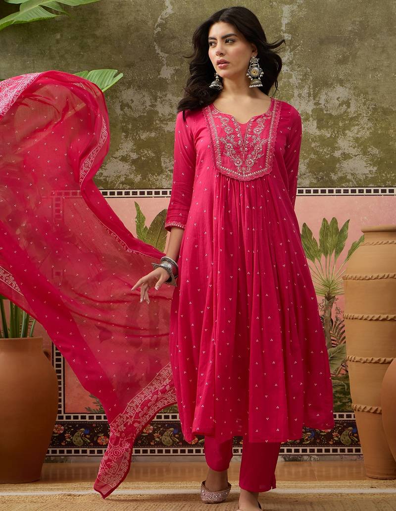 | Product Name | Pink Printed Kurta With Trousers & Dupatta Set | |
