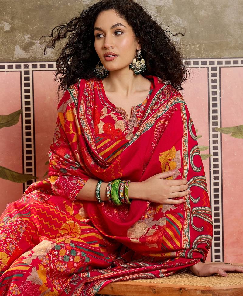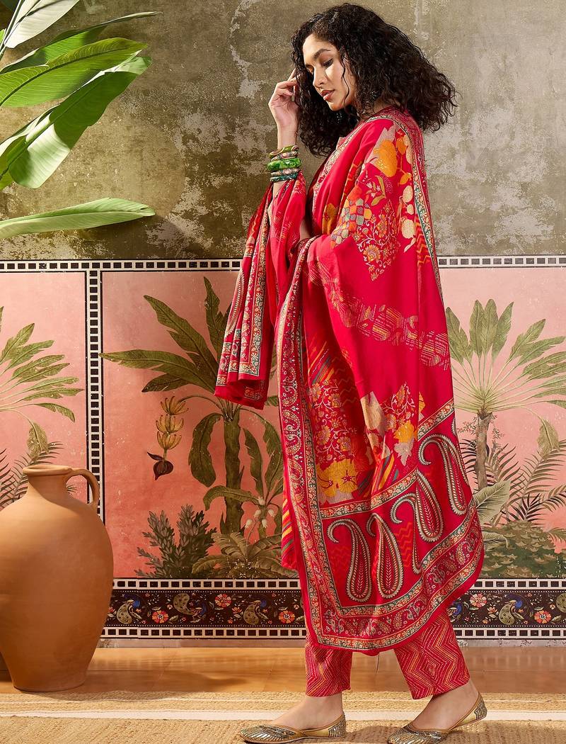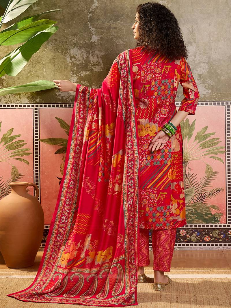 Product Name Rani Printed Kurta With Trousers & Dupatta Set