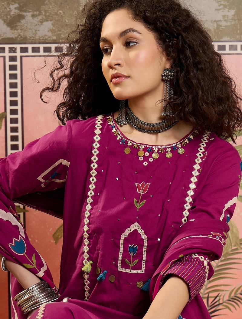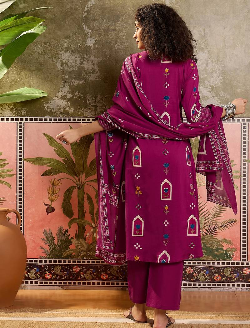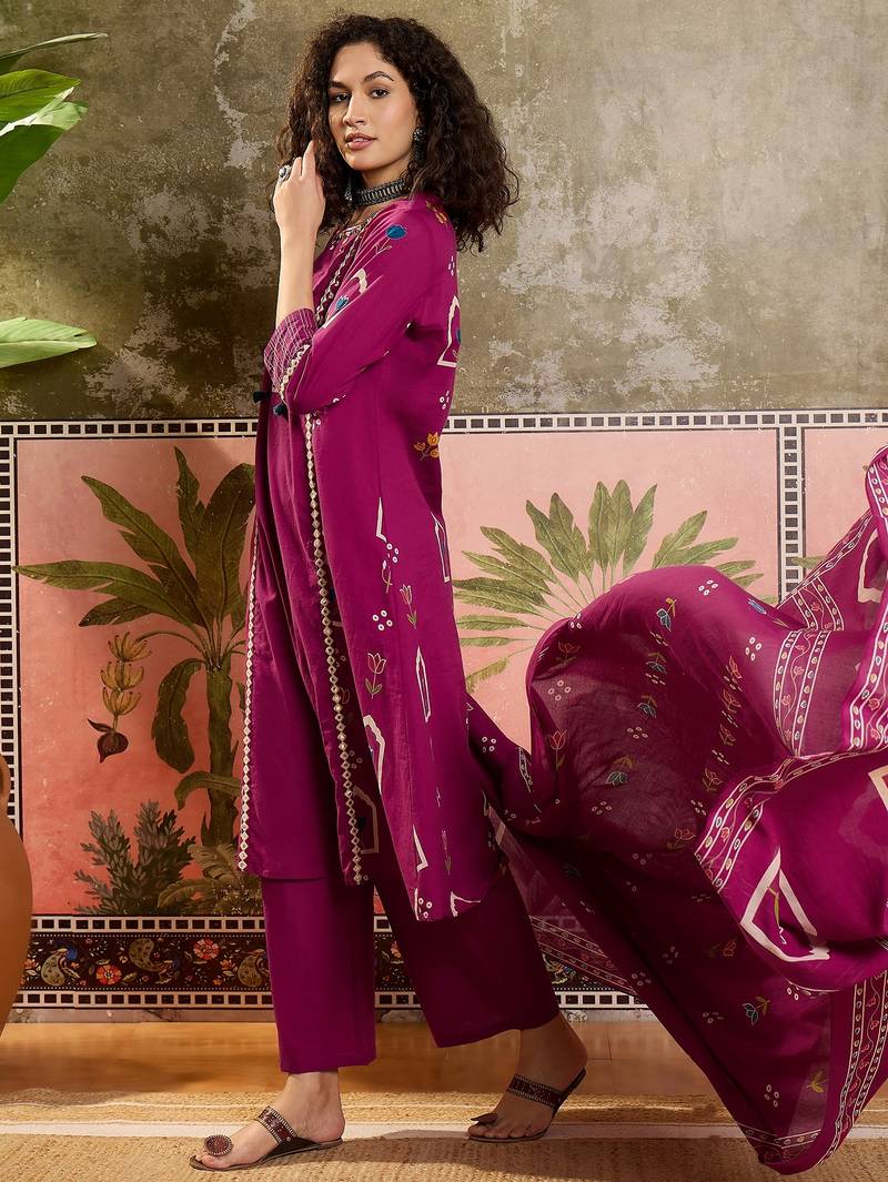| Product Name | Wine Printed Kurta With Trousers & Dupatta Set | |