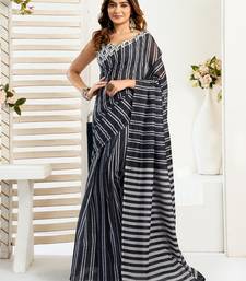 Black digital printed linen ready to wear designer saree with unstitched blouse