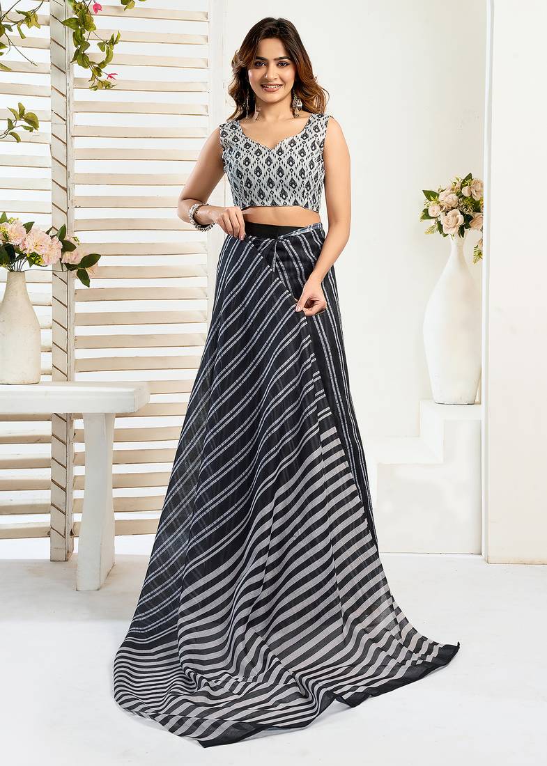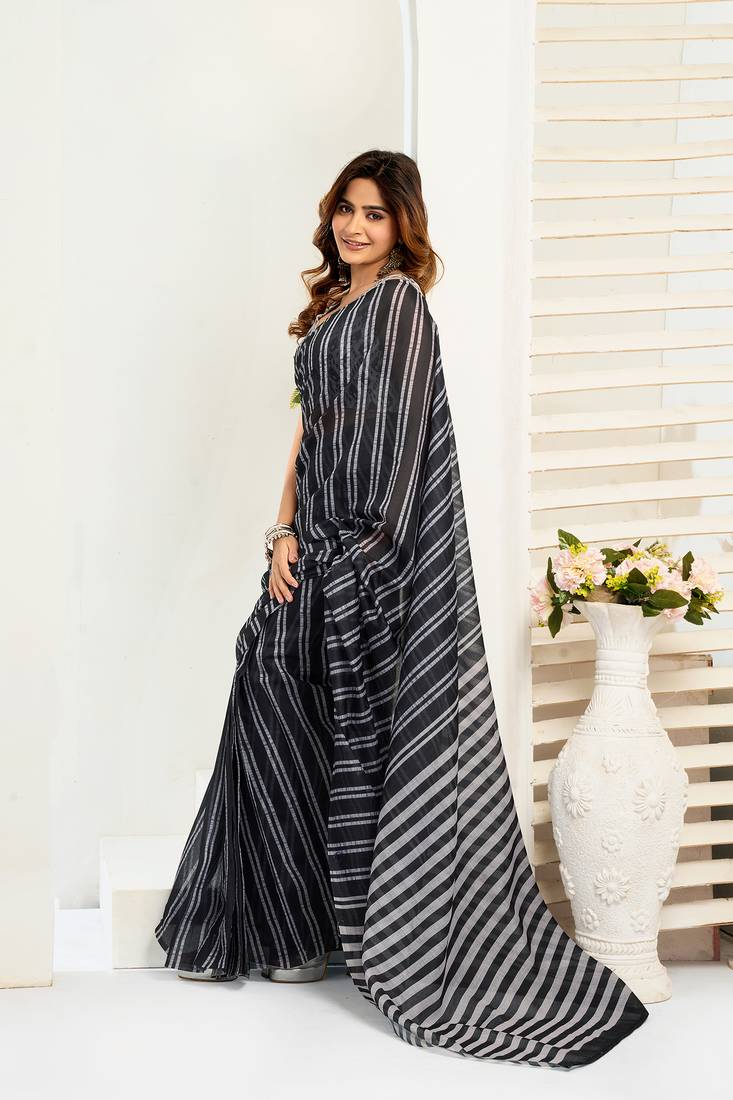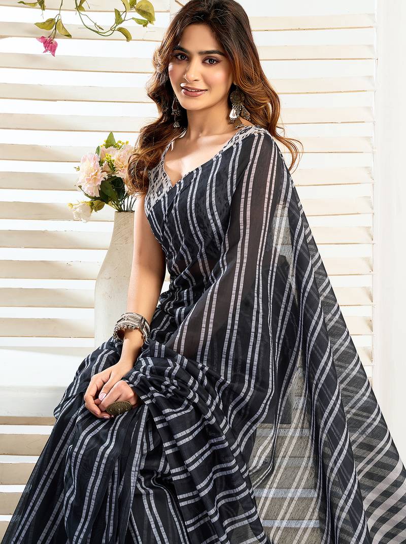 | Product Name | Black Digital Printed Linen Ready To Wear Designer Saree With Unstitched Blouse | |