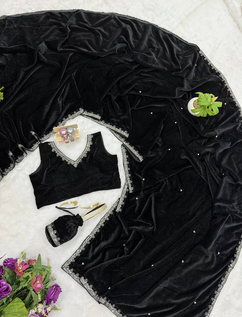 | Product Name | Black Velvet Embroidery Lace Work Saree With Unstitched Blouse | |