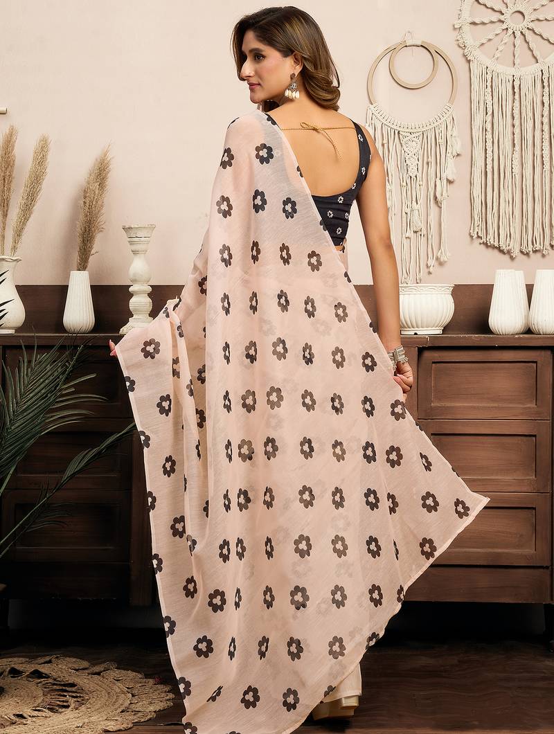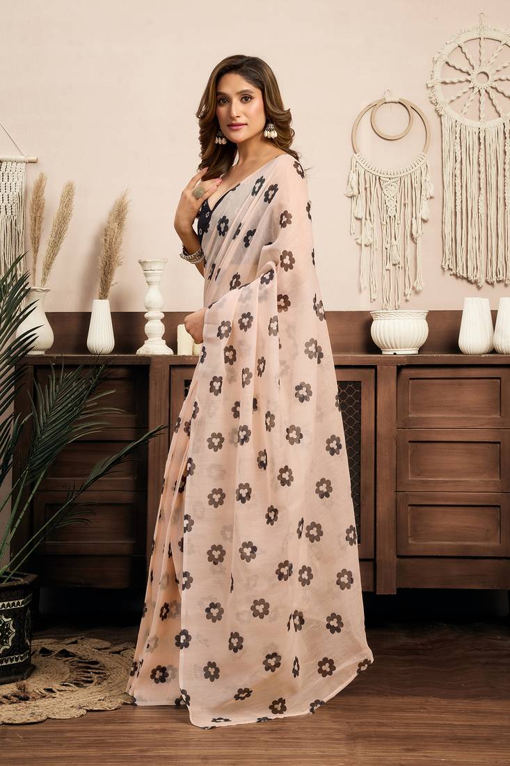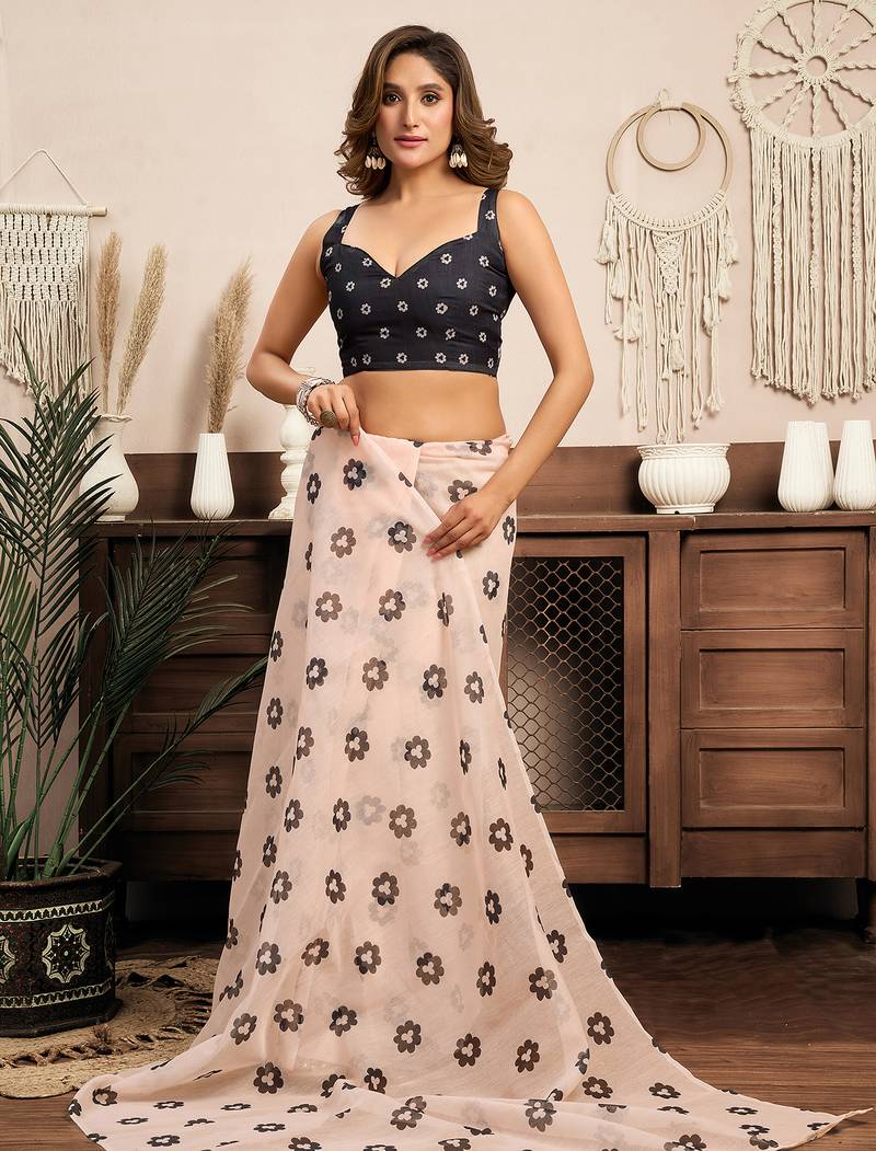 | Product Name | Cream Digital Printed Linen Ready To Wear Designer Saree With Unstitched Blouse | |