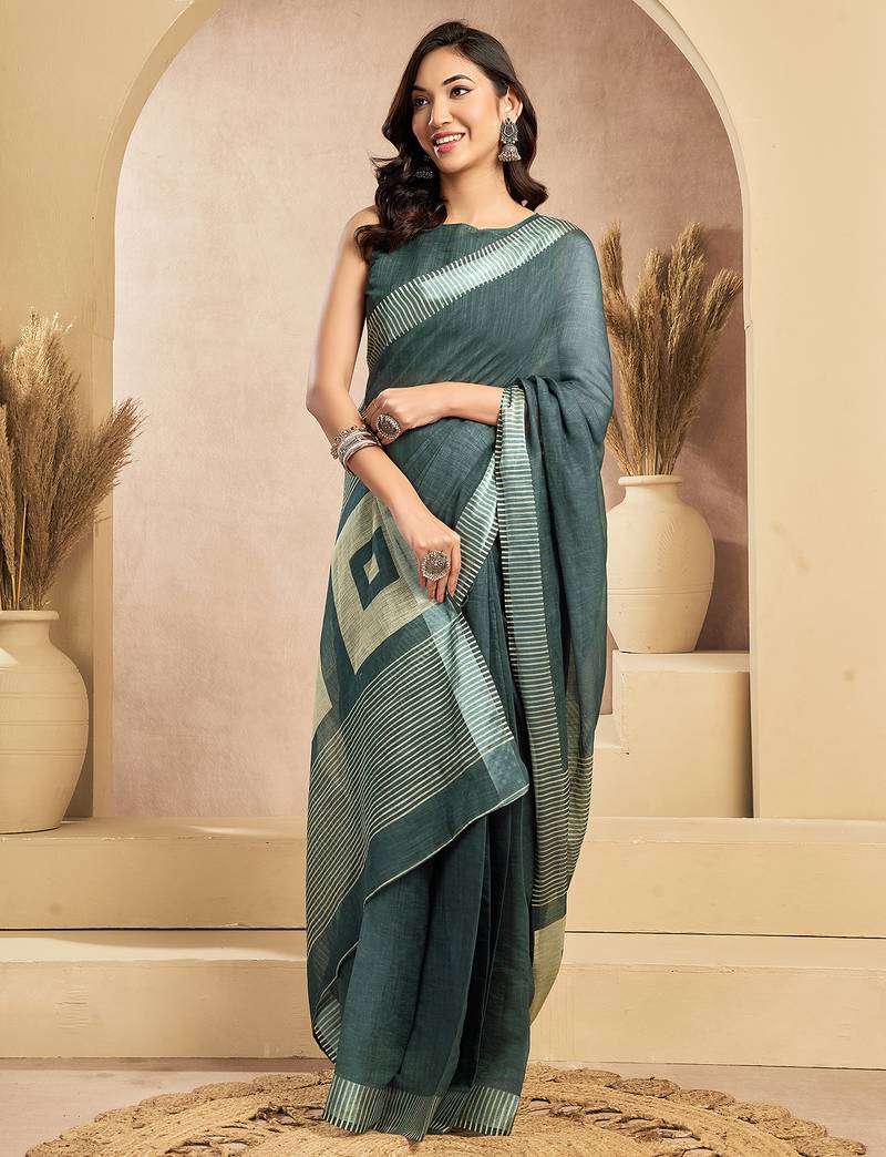 | • | Saree | : | Color- Teal / Fabric- Linen |