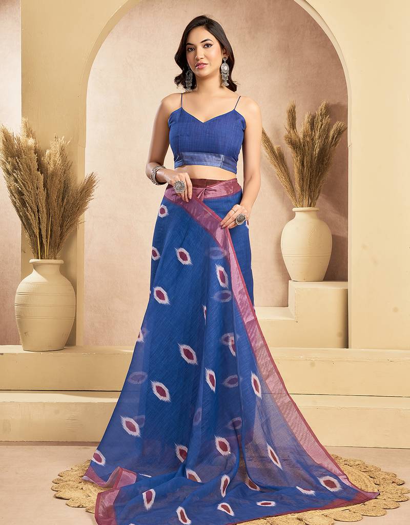 | Product Name | Digital Printed Linen Ready To Wear Pocket Saree With Unstitched Blouse | |