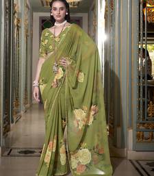 Mehendi spectacular georgette printed with pearl lace saree with unstitched blouse