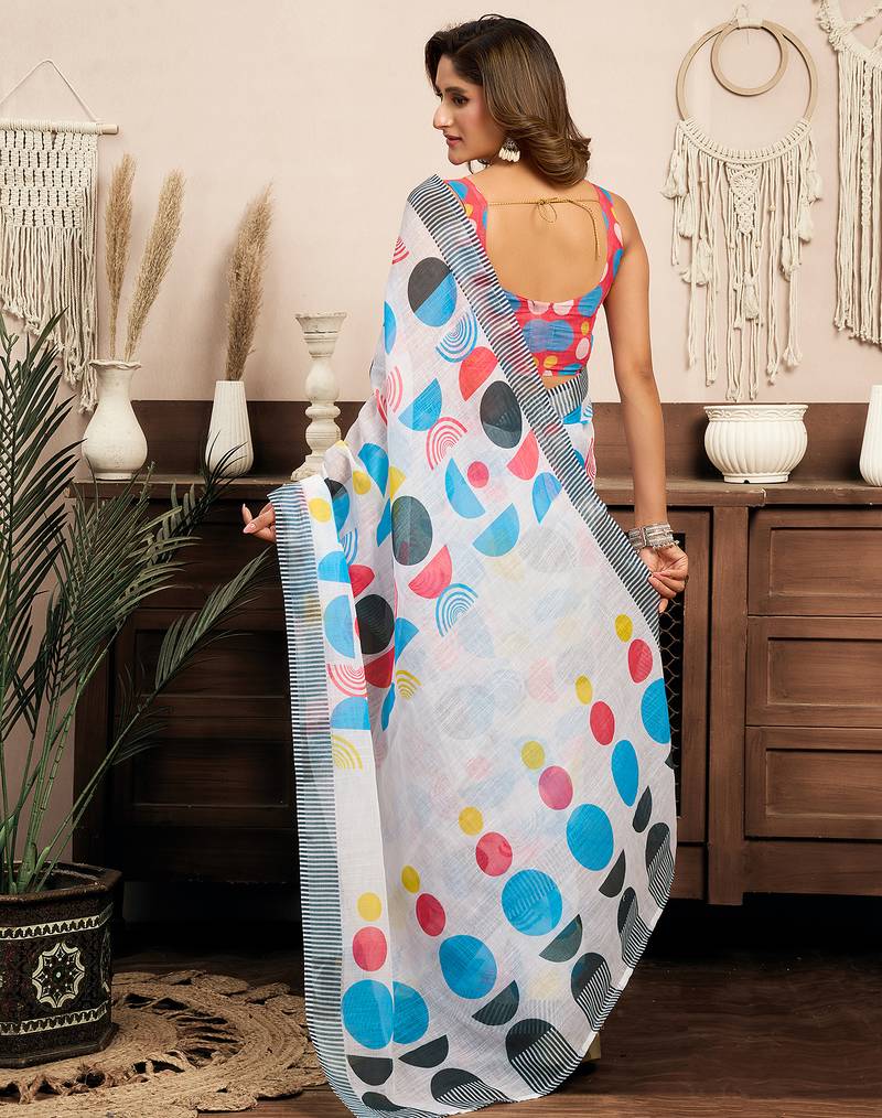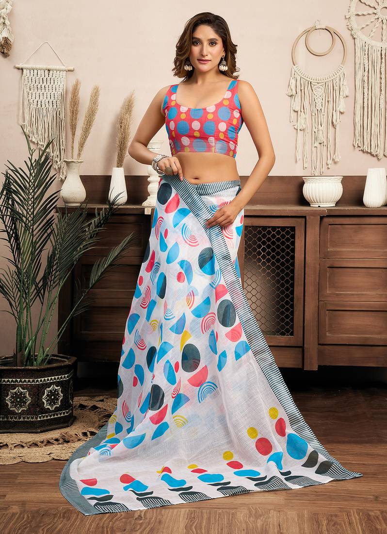 | Product Name | Multicolor Digital Printed Linen Ready To Wear Designer Saree With Unstitched Blouse | |