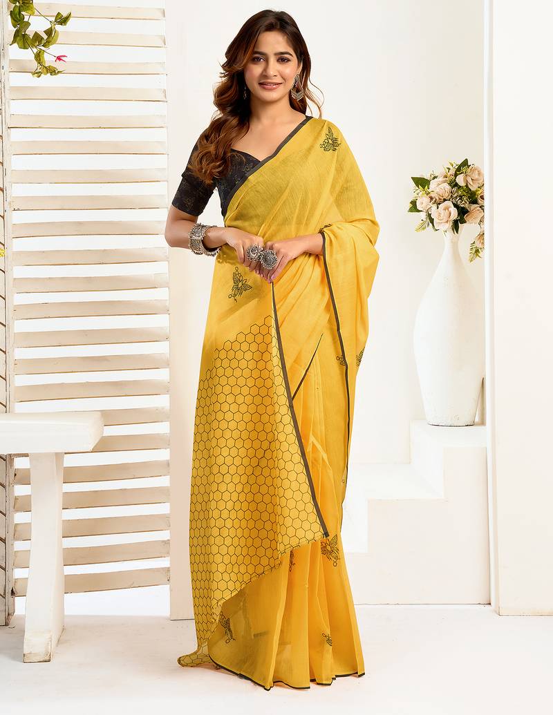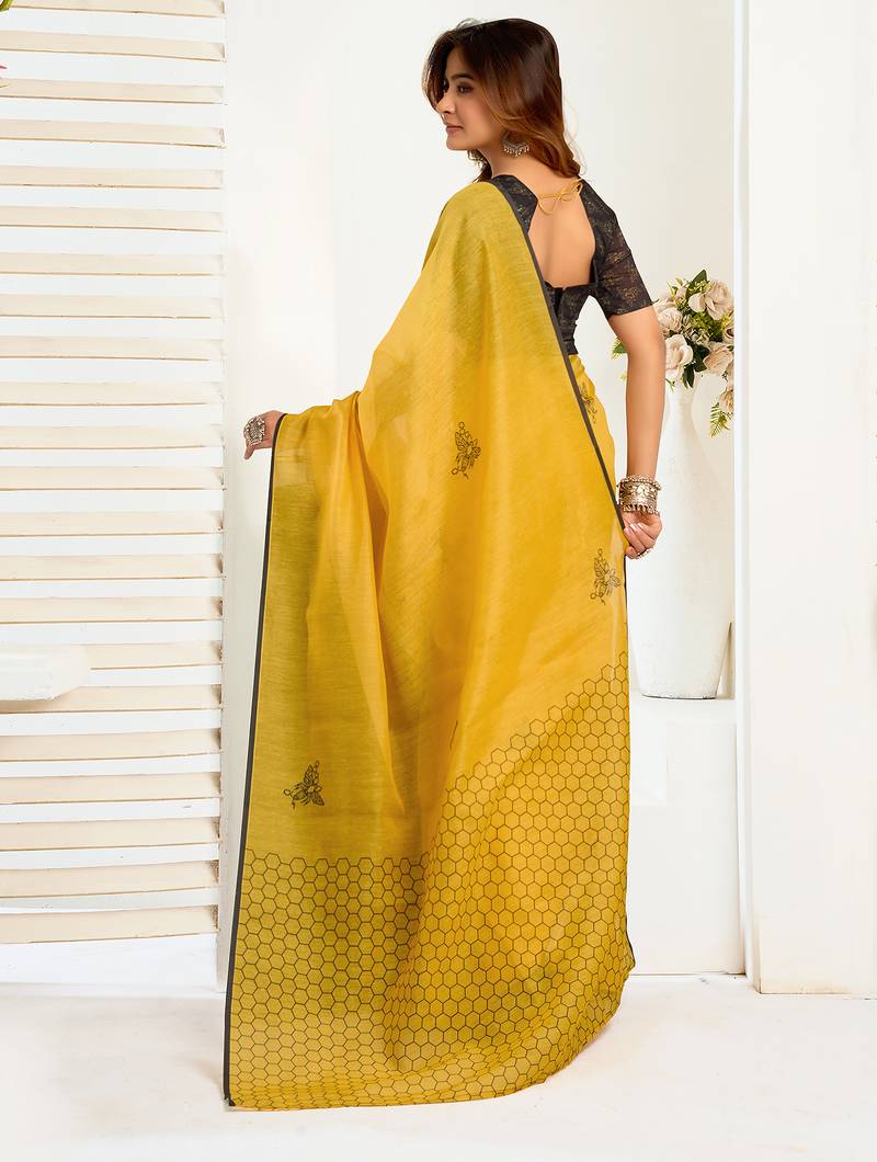 | Product Name | Mustard Digital Printed Linen Ready To Wear Designer Saree With Unstitched Blouse | |