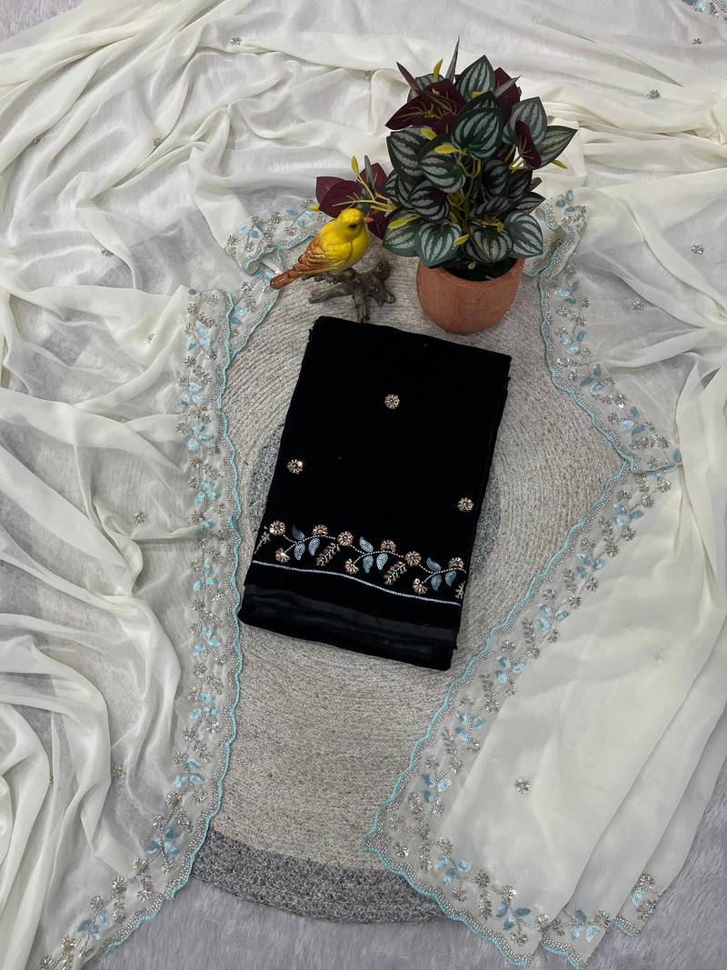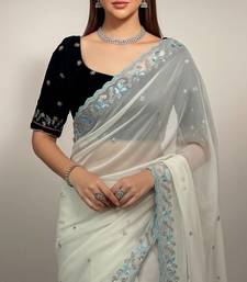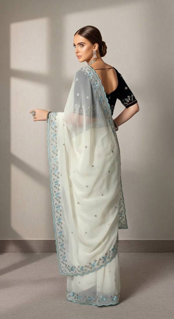 Product Name Off White Faux Georgette Beads And Sequins With Multi Thread Work On Border Saree