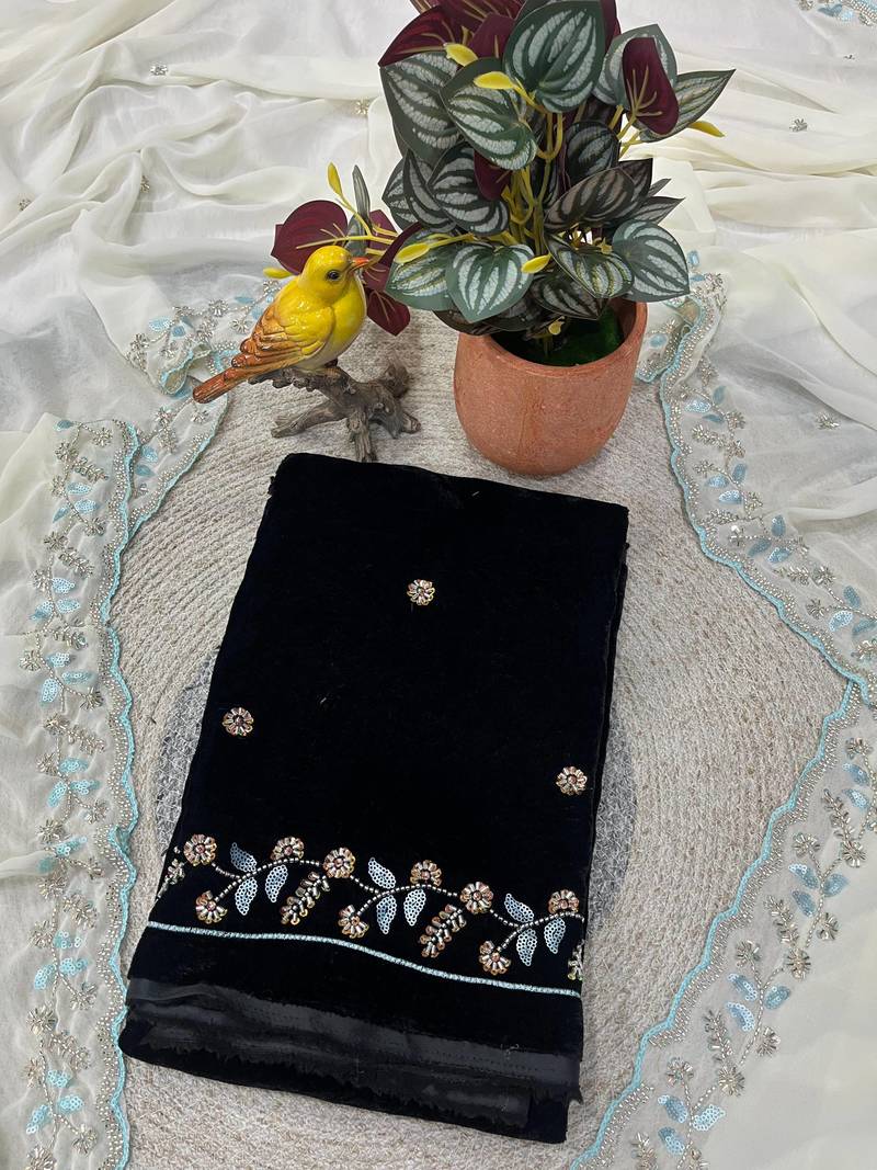 Work : Solid Plain Saree With Floral Embellishment Work Of Beads And Sequins With Multi Thread Work On Border.
