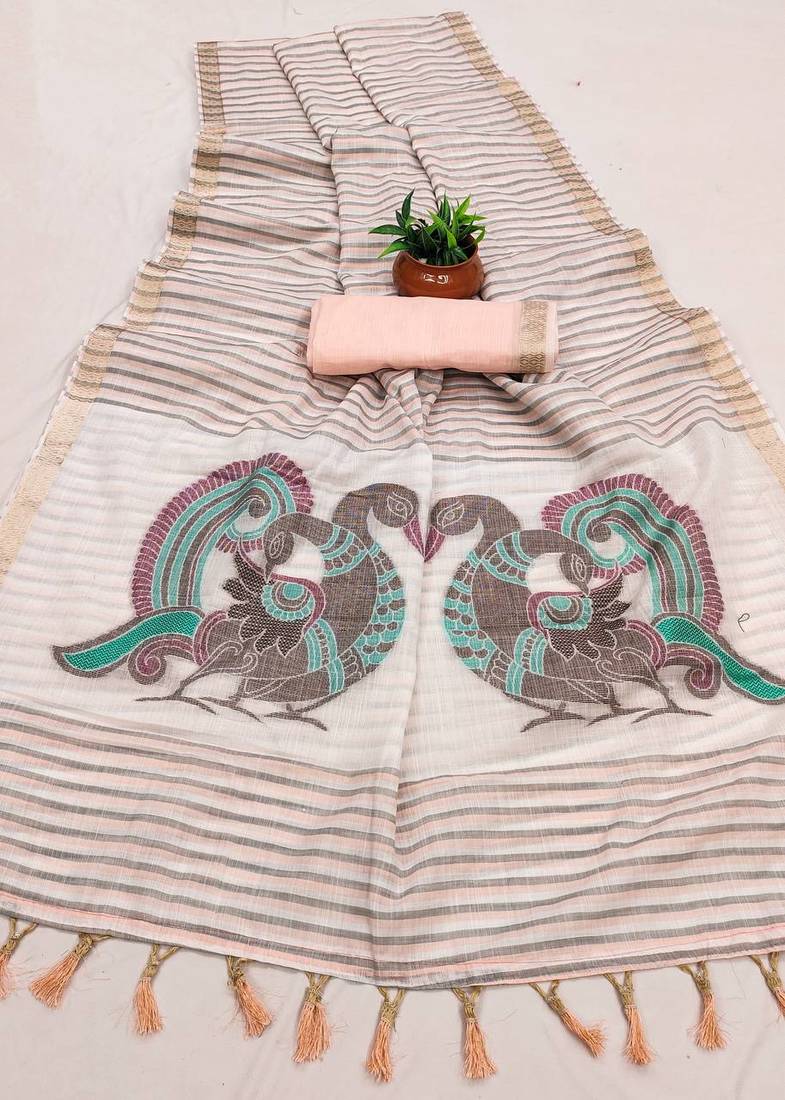| Product Name | Peach Linen Cotton Saree With Meenakari Weaving Pallu | |