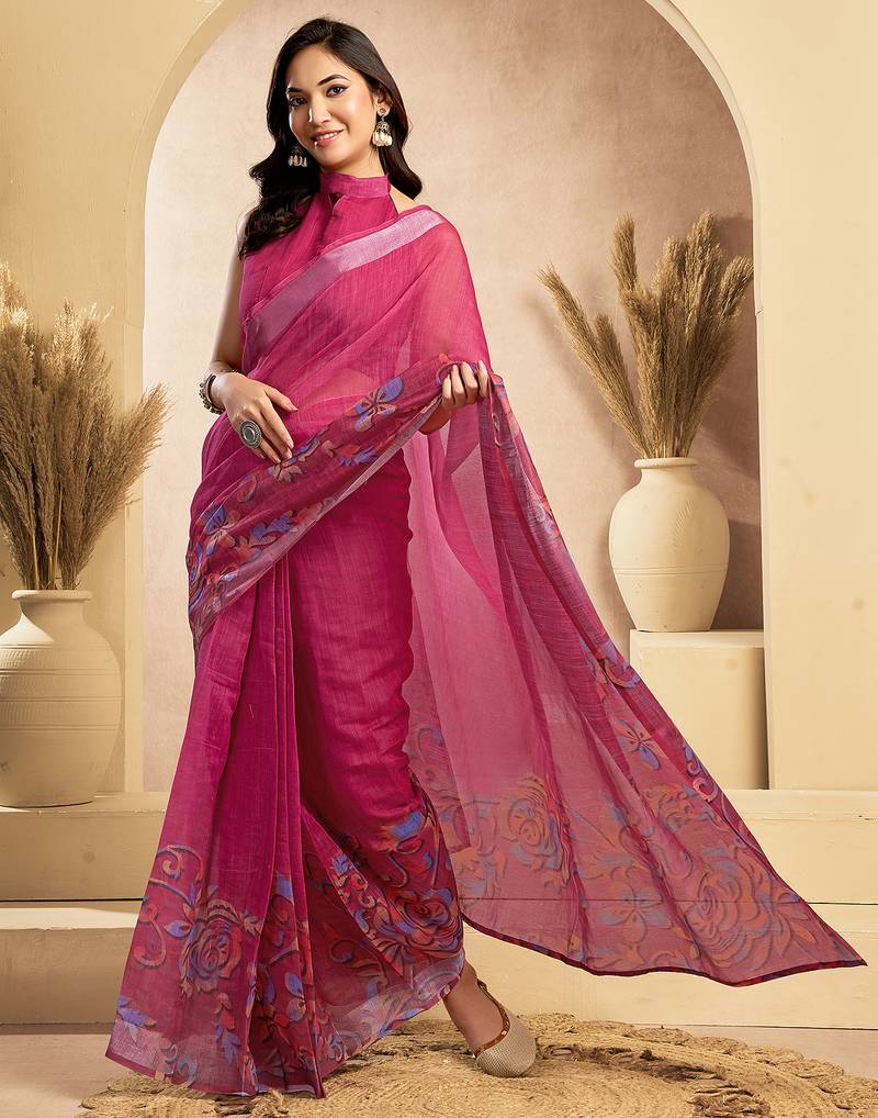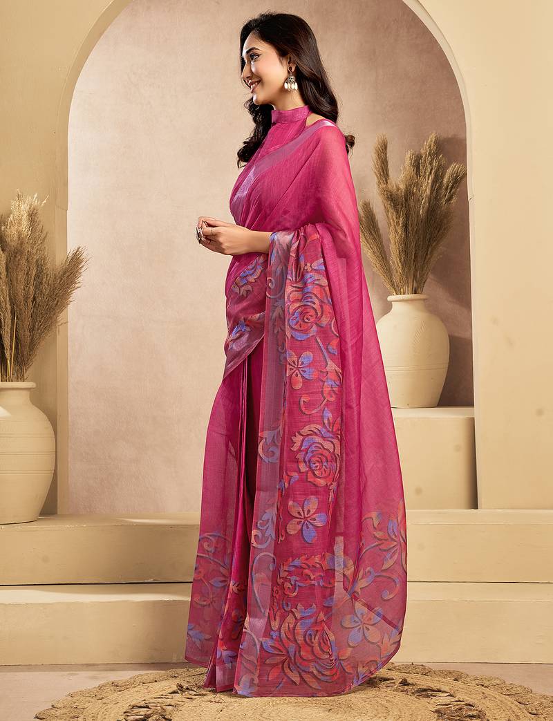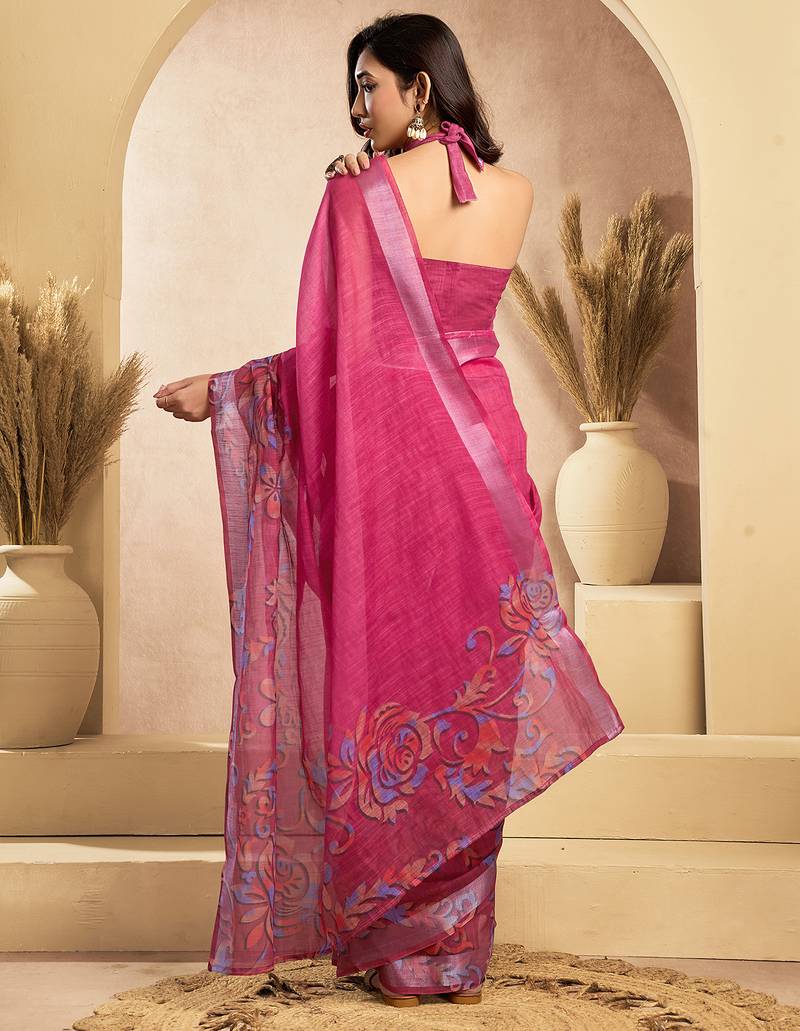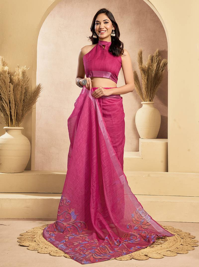 | Product Name | Pink Digital Printed Linen Ready To Wear Designer Saree With Unstitched Blouse | |
