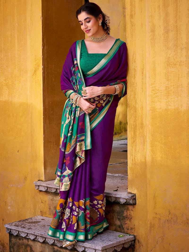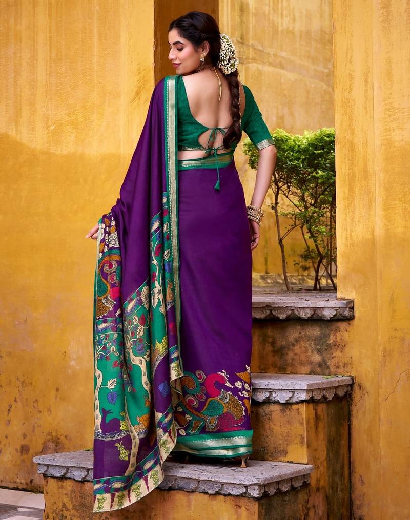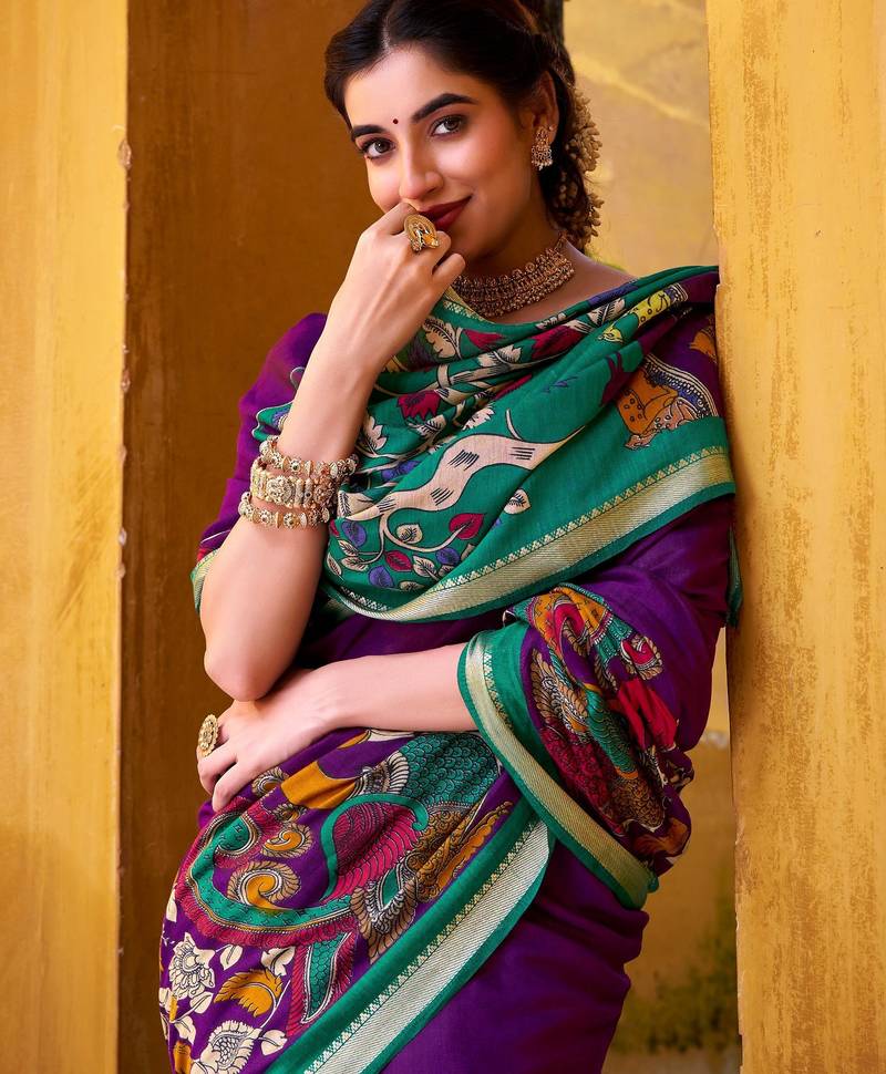 | Product Name | Purple Viscose Chanderi Kalamkari Print With Zari Working Saree & Unstitched Blouse | |