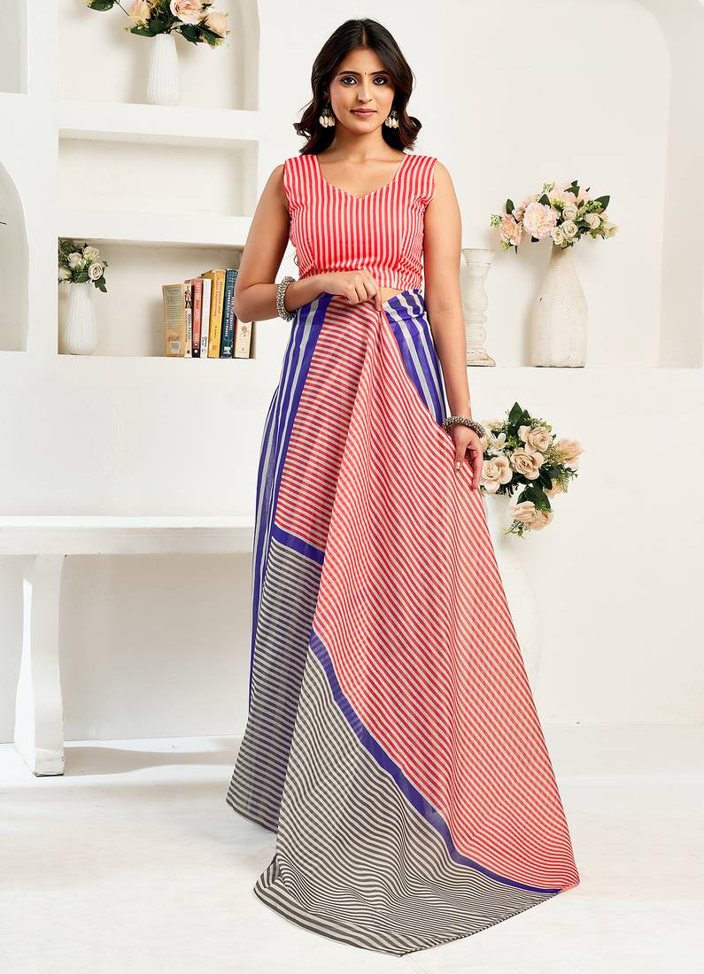 | Product Name | Royal Blue Digital Printed Linen Ready To Wear Designer Saree With Unstitched Blouse | |