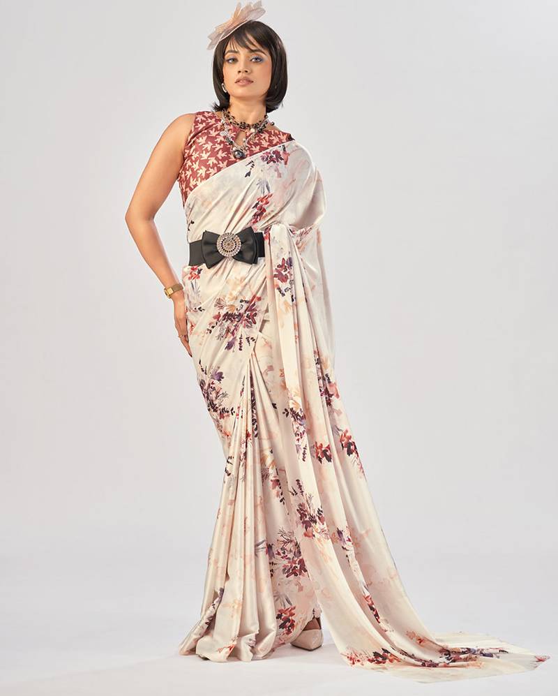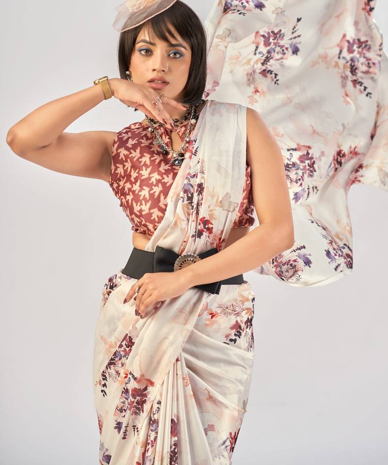 | Product Name | White Satin Silk Elegant Printed Saree With Unstitched Blouse | |