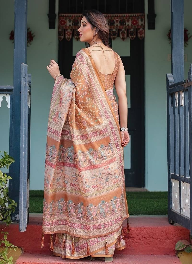| • | Saree | : | Color- Brown / Fabric- Linen |
