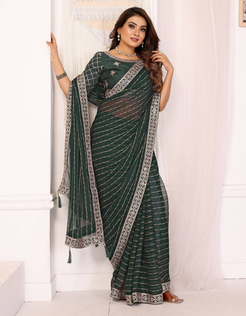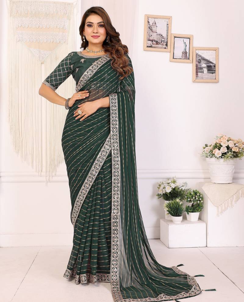 Georgette embroidered & sequin work bollywood fancy saree (madhvi-green)