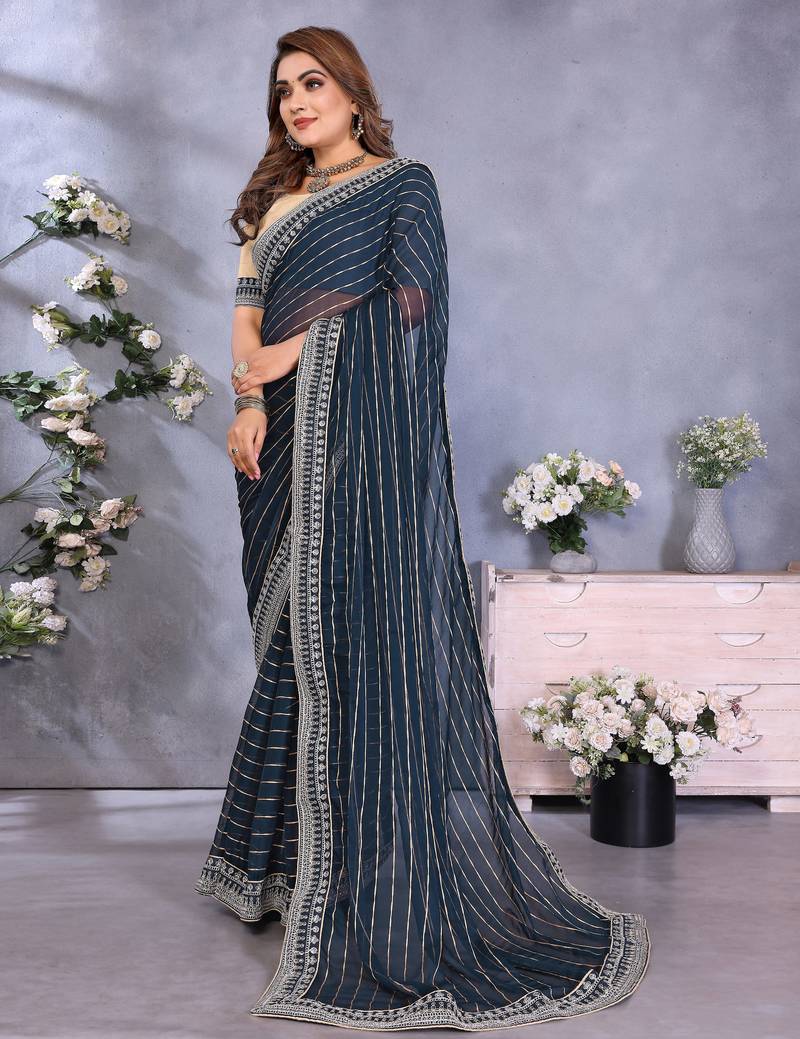 Georgette embroidered & sequin work bollywood fancy saree (shreeja-navy)