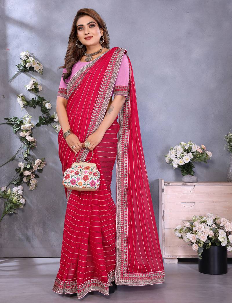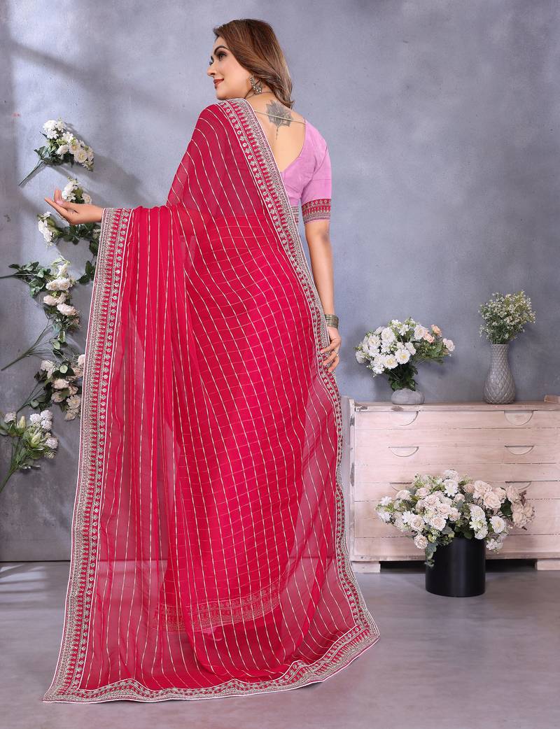 Georgette embroidered & sequin work bollywood fancy saree (shreeja-pink)