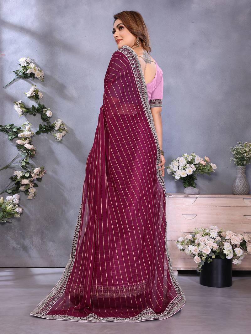 Georgette embroidered & sequin work bollywood fancy saree (shreeja-wine)