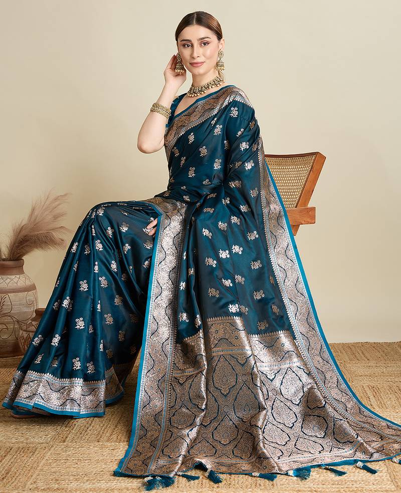 Soft litchi art silk banarasi art silk jacquard saree (str-rajgharana-02-firozi)