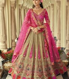 Beige silk embroidered & art mirror work wedding wear lehenga choli