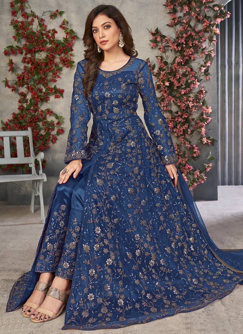 | Product Description | This Blue Embroidered Anarkali Gown Set Delivers Pure Elegance, Grace, And Royal Charm In One Stunning Outfit. Designed For Women Who Love Timeless Ethnic Fashion, This Ensemble Creates A Rich, Luxurious Presence That Feels Perfect For Grand Occasions And Celebrations. The Outfit Features A Flowing Floor Length Anarkali Silhouette That Creates A Beautiful Flare From The Waist Down, Giving A Regal, Princess Like Look. The Deep Blue Color Adds Richness And Warmth, Making The Outfit Feel Powerful, Festive, And Traditionally Royal. The Gown Is Beautifully Detailed With Dense Silver Floral Embroidery Spread Across The Entire Surface, Creating A Handcrafted Luxury Finish. The Embroidery Work Adds Depth, Texture, And Sparkle Without Looking Heavy, Making The Outfit Look Premium Yet Balanced. The Sheer Embroidered Sleeves Add Softness And Elegance, Giving The Outfit A Refined Designer Touch. The Matching Flowing Dupatta Completes The Look Perfectly, Adding Grace And Movement To The Outfit. It Enhances The Overall Silhouette And Makes The Ensemble Look Complete, Festive, And Ceremony Ready. This Outfit Feels Rich, Graceful, And Confident — Not Loud, Not Heavy, But Royal And Elegant. It Creates A Natural Festive Presence That Makes The Wearer Stand Out Beautifully In Any Celebration. |