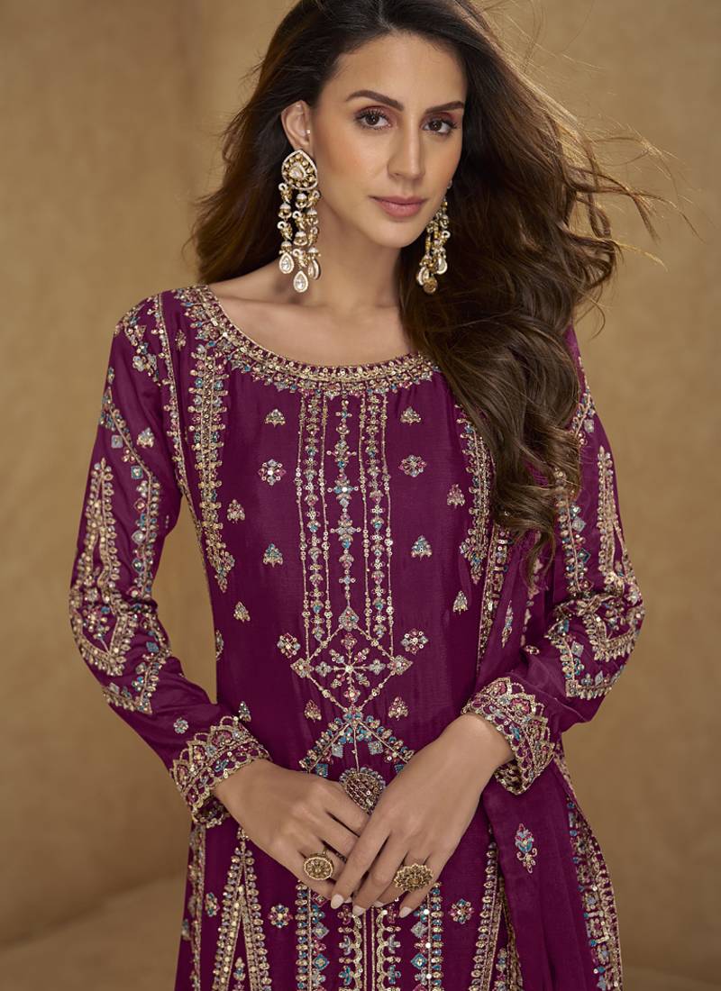 | Product Name | Dark Pink Embroidered Chinon Silk Salwar Suit | |