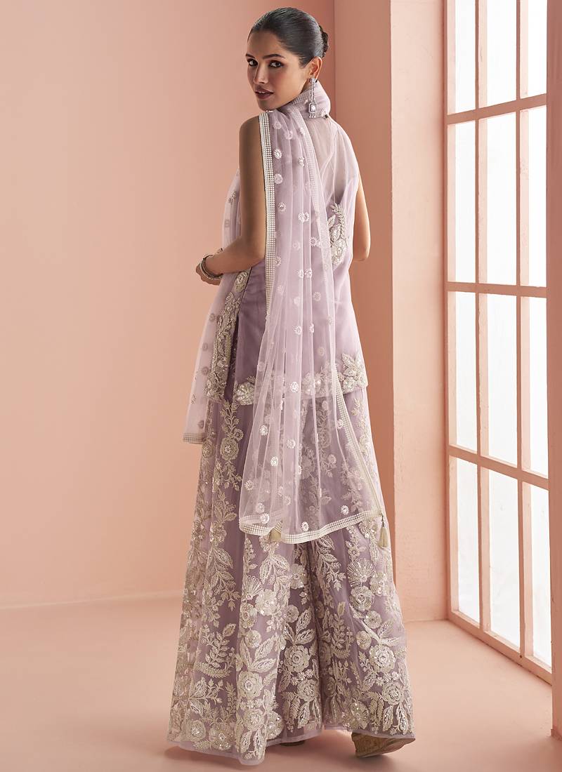 Product Name Light Lavender Net Embroidered Beads Trendy Plazzo Suit