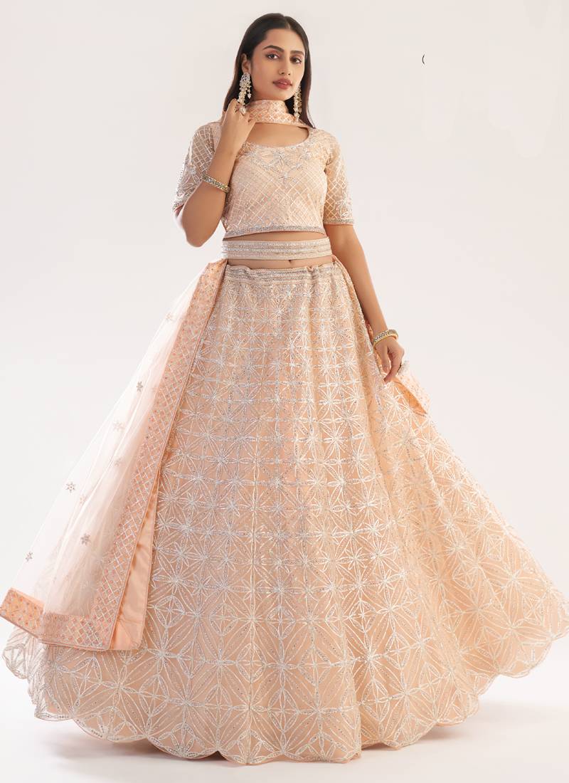 | Product Name | Light Peach Net Embroidered Wedding Wear Lehenga With Choli And Dupatta | |