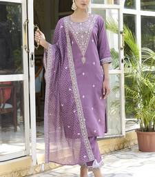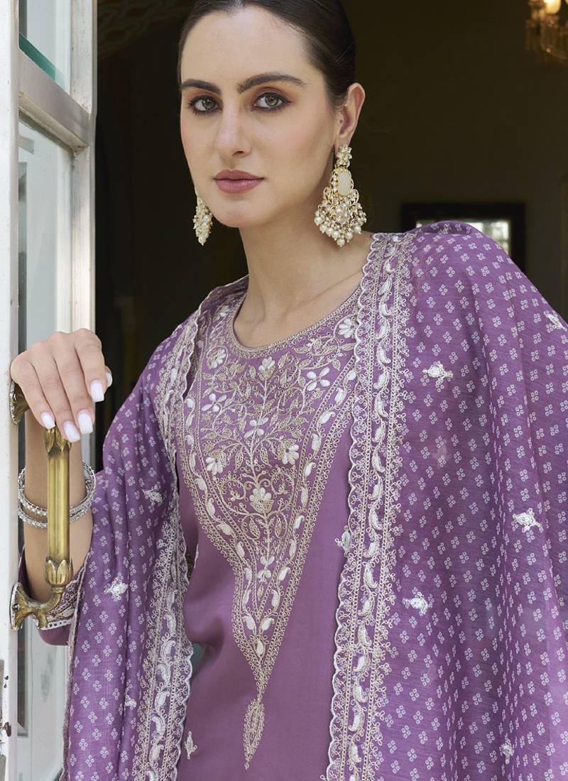 Product Name Light Purple Embroidered Blend Silk Salwar Suit