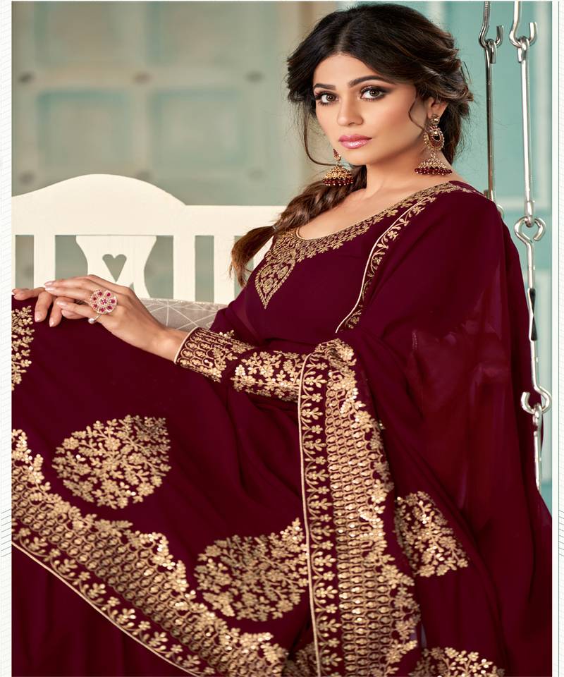 | Product Name | Maroon Embroidered Flared Anarkali Suit | |