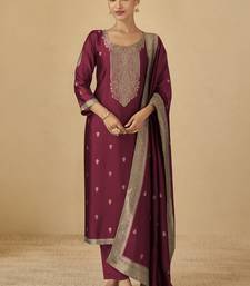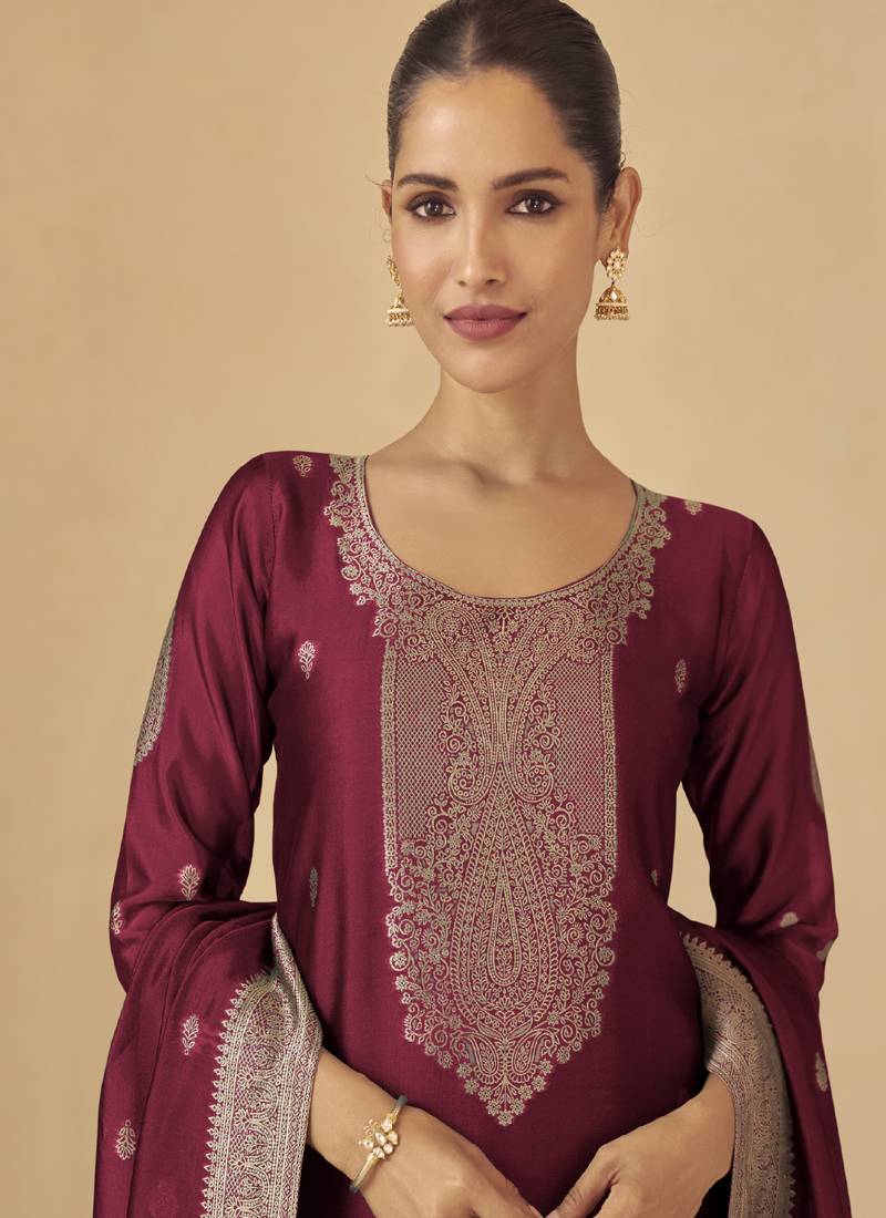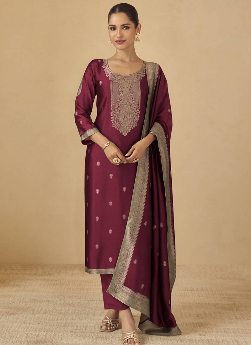 Maroon viscose silk jacquard wedding wear salwar suit unstitched