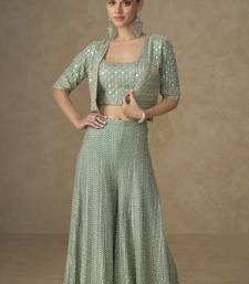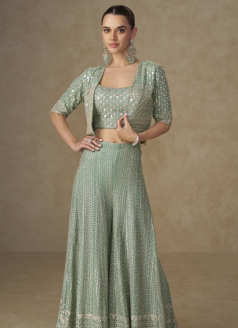 | Product Name | Mint Green Georgette Embroidered & Handwork Jacket Palazzo Set | |
