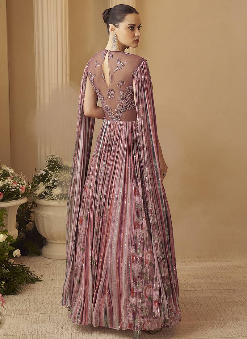 | Product Name | Onion Pink Chinon Silk Embroidered Trendy Wedding Look Stylish Gown | |