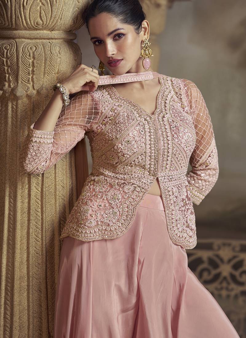 Product Name | Peach Net Embroidered Palazzo Suit | |