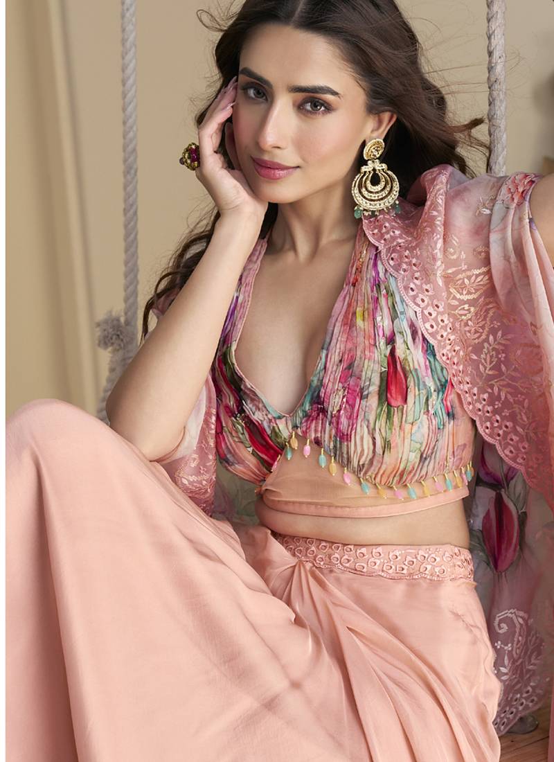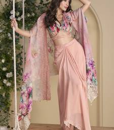 Peach real chinon silk embroidered shrug stytle western suit stitched