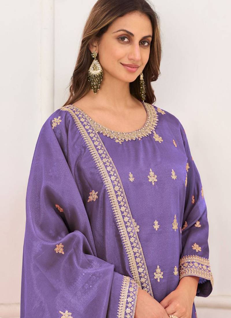 Purple embroidery real simar silk salwar suit stitched