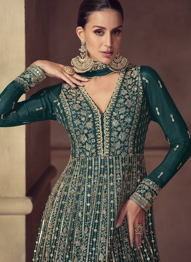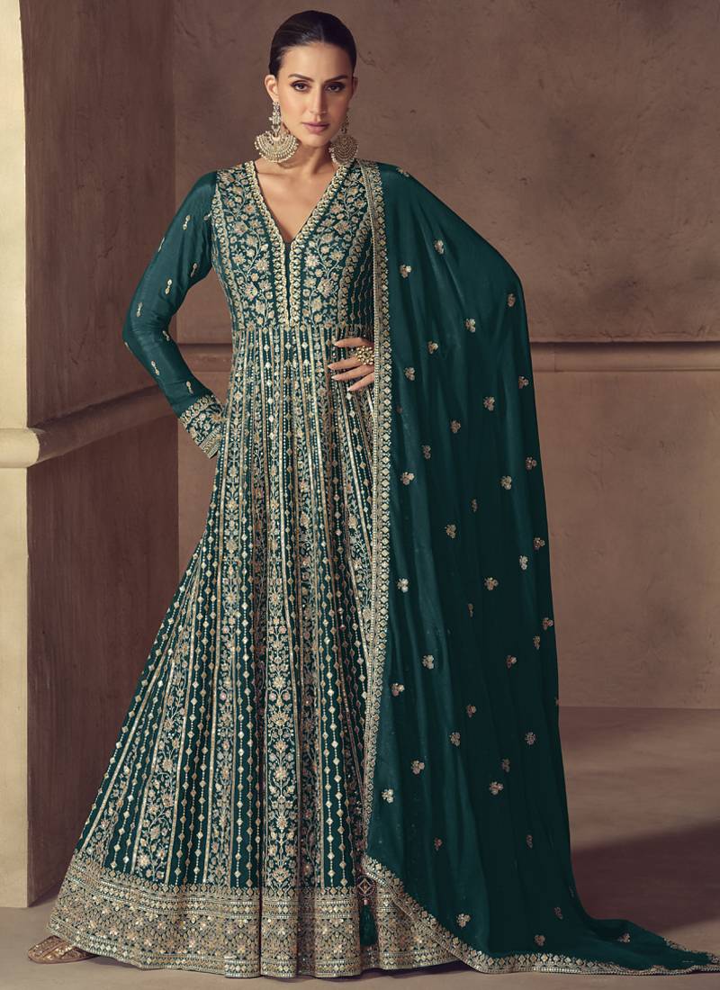| Product Name | Rama Green Chinon Silk Embroidered Designer Anarkali Suit | |