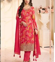 Red chinon silk embroidered digital print designer salwar suit unstitched
