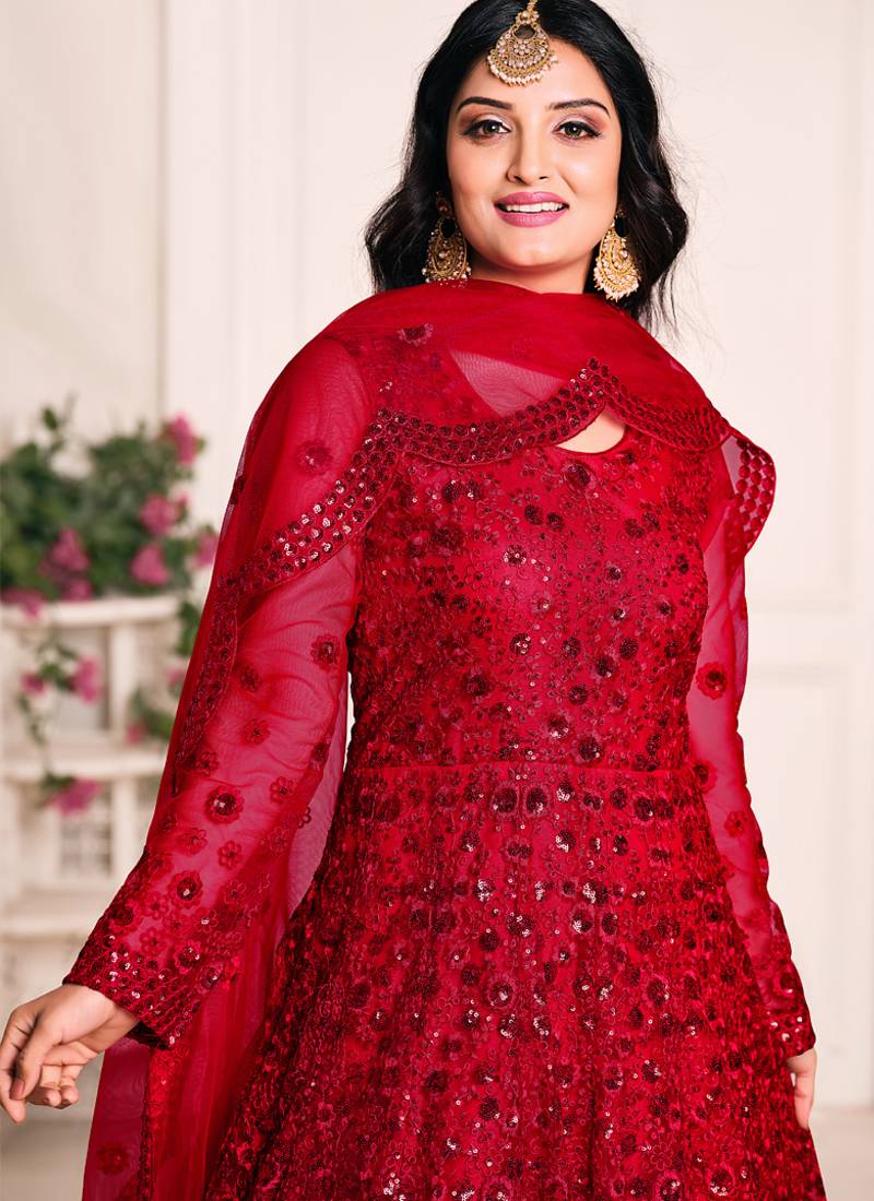 | Product Name | Red Net Emboidered Wedding Wear Anarkali Suit | |