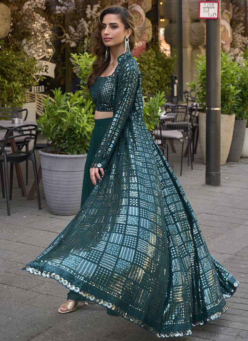| Product Name | Teal Green Georgette Embroidered Western Style Plazzo Suit | |