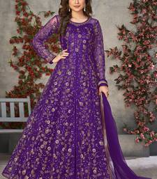 Violet embroidered anarkali gown with dupatta semi stitched