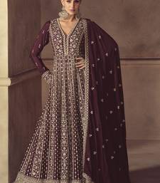 Wine chinon silk embroidered designer anarkali suit stitched