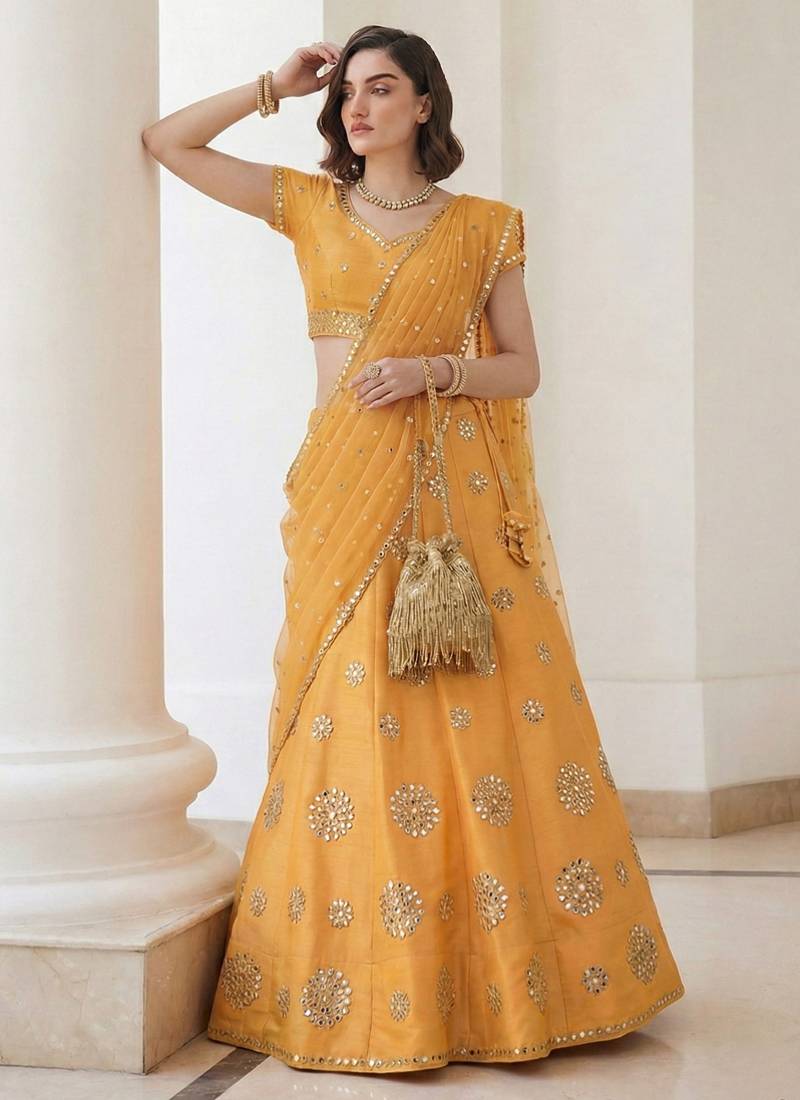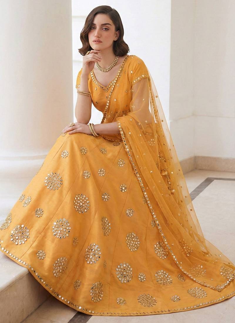 | Product Name | Yellow Heavy Silk Sequins Embroiedery & Real Mirror Wedding Lehenga | |