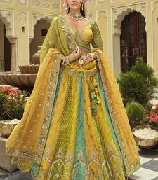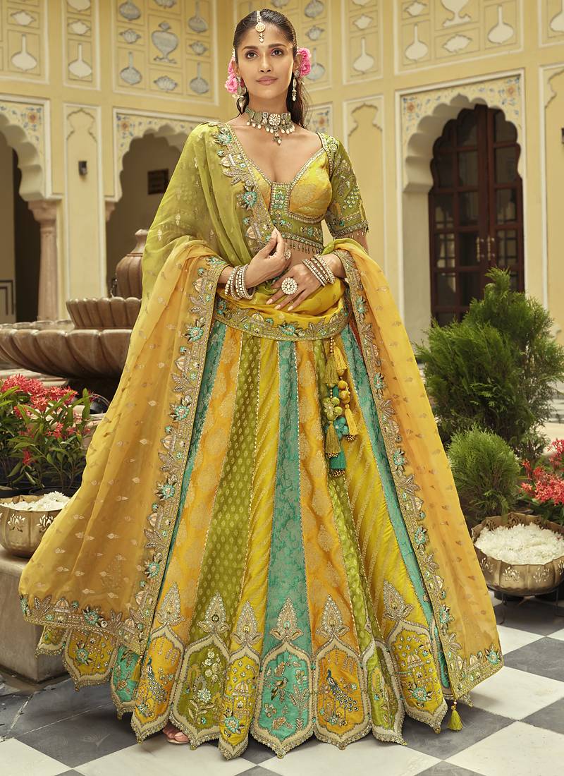 yellow silk embroidered & art mirror work wedding wear lehenga choli